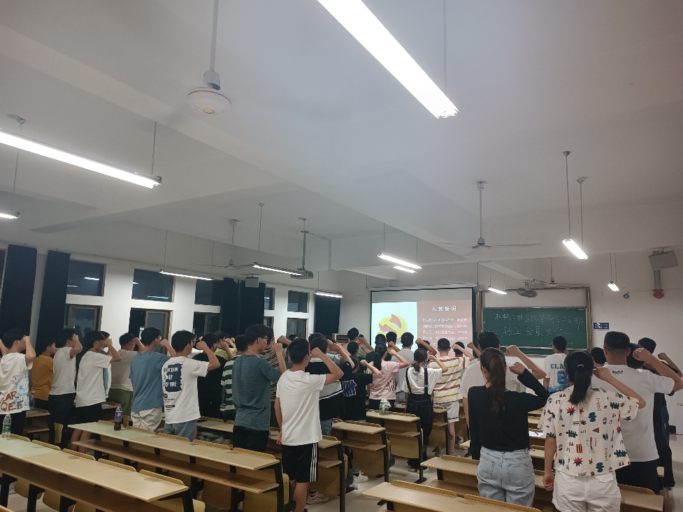 最后,14位发展对象在纪律委员方昌磊同志的带领下,对着党旗,庄严而隆重地进行了入党宣誓,支部其他党员同志一并重温入党誓词。(撰稿人:汪辉  审核人:李克明)
