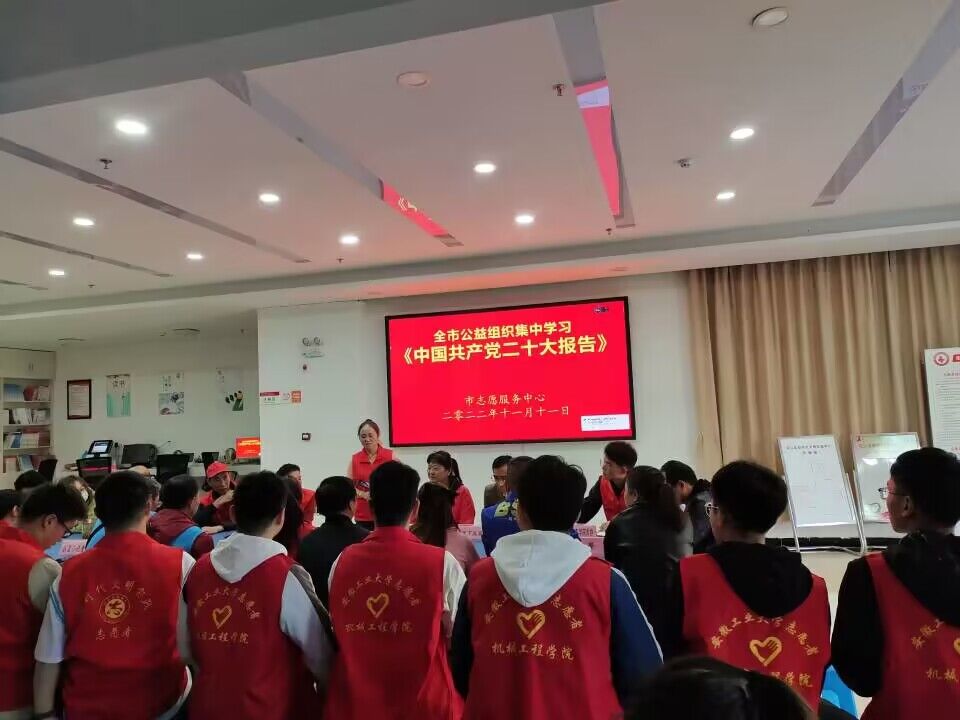 市志愿服务中心工作人员指出,党的二十大是在全党全国各族人民迈上全面建设社会主义现代化国家新征程、向第二个百年奋斗目标进军的关键时刻,召开的一次十分重要的大会。学习宣传贯彻党的二十大精神是全党全国各族人民当前和今后一个时期的首要政治任务。学习宣传党的二十大精神,青年学生是重要群体。党的二十大报告专门用一整段话对全党抓好青年工作给予鲜明强调、提出明确要求,对青年一代给予热情鼓励、寄予殷切厚望,饱含深情、语重心长,充分体现了习近平总书记对青年和青年工作的高度重视、亲切关怀,必将极大激发广大青年爱党爱国情感,必将极大振奋青年一代奋斗热情。