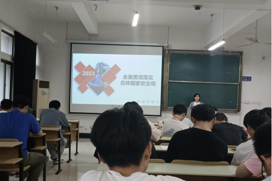 本科生第一党支部在机械楼405开展主题教育,支部书记陈洁作“纵深推进全面从严治党,牢固树立总体国家安全观”专题党课报告,支部全体党员参会。