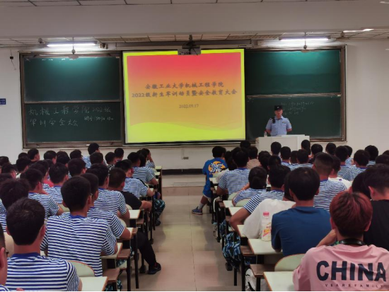 在佳山校区教三南201、301教室召开了2022级新生安全教育大会。会议邀请了花山区民警主讲,学院党委副书记李克明,2022级辅导员费白露、濮莹萍及2022级全体新生参加了大会。