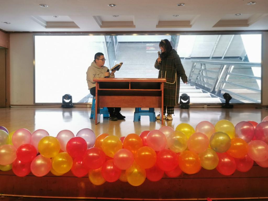 第十七届“青春可回首,欢欣向明天”主题心理话剧汇演在本部大学生活动中心拉开帷幕。学院团委书记、心理工作站站长费白露,学生会副主席董立杰,文娱部部长陈天然,心理健康部部长周句翃担任大赛评委,22级全体同学参与此次活动。