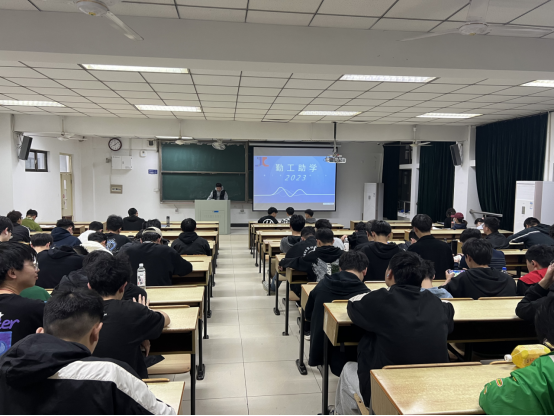 于东教202教室组织勤工助学政策宣讲会,宣讲会由院团委学生会权益部副部长李彬主讲。
