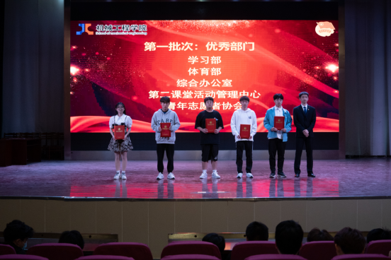 于新大活报告厅举办了2022年度团委学生会表彰大会,对评选出的先进集体和个人进行表彰。