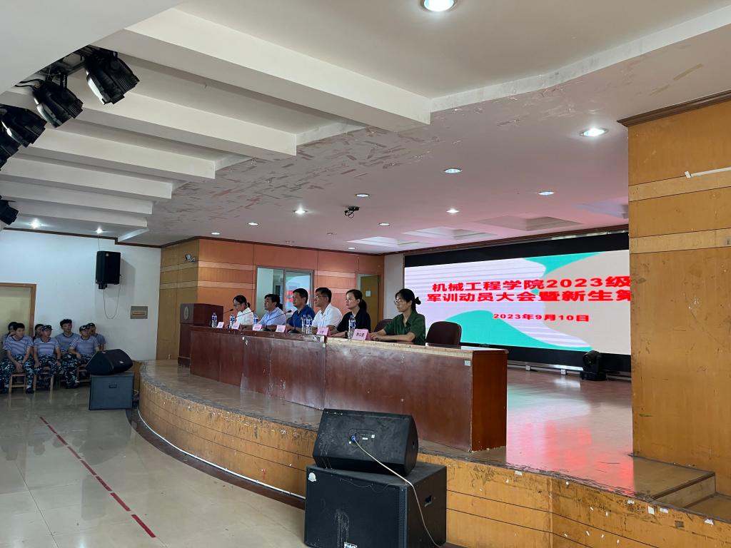 在佳山校区大学生活动中心召开了2023级新生军训动员大会,学院党委书记吴文兵,学院院长刘庆运,学院党委副书记、副院长李克明,团委书记费白露,各系主任、2023级辅导员、教官代表以及全体2023级新生参加了此次大会,大会由新生辅导员张敏主持。