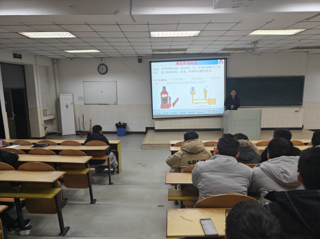 在秀山校区阶教103教室召开了机械设计制造及其自动化专业分方向介绍会。会议由机自专业系主任高文斌主持,辅导员费白露及该专业2021级全体学生参加会议。