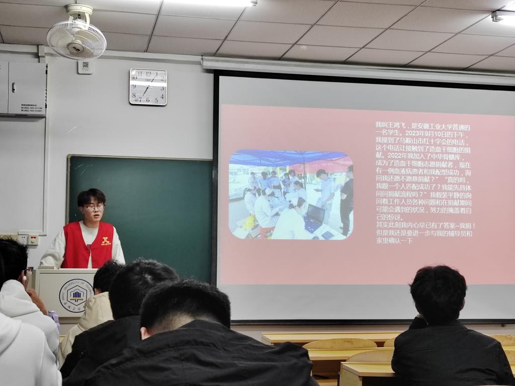 “学雷锋”专题理论宣讲团成员、造血干细胞捐献者王鸿飞同学和宝钢奖学金获得者王博同学,分别在佳山校区教一615教室、教三南201教室,开展“雷锋精神代代相传”理论宣讲活动和“学雷锋”科普宣传志愿服务,2023级本科生参加。