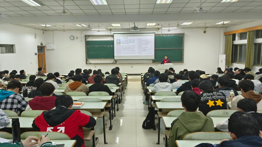 王博以《大学生竞赛与科研》为题给2023级本科生作专题报告,他从学科竞赛、科研经历、生涯规划三个方面展开,详细介绍了自己参加英语竞赛、数学建模竞赛、创新创业竞赛、国家级SRTP立项、发表专利、发表论文等的心路历程。王博鼓励学弟学妹们要珍惜大学时光,努力学习,课余时间多参加学科竞赛,把理论知识和专业实践结合起来,要做好大学生涯规划,准备读研的同学要为研究生阶段打下坚实的科研基础,所有同学都要为未来就业打下坚实的能力基础。
