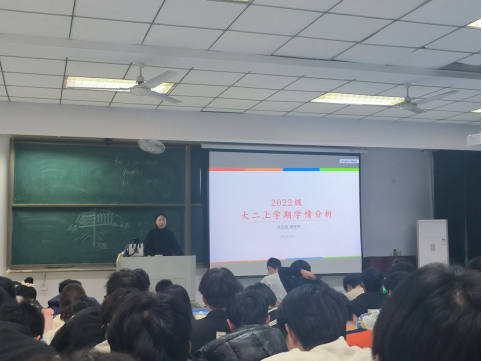 2022级于大二上学期期末补考结束后及时梳理了学生考试情况,结合上学期期末考试总体情况,于3月21日召开了考试学情分析会。会议由2022级辅导员濮莹萍主持。