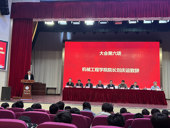 院长刘庆运致开幕辞,代表学院向长期以来关心和支持学院科技创新、文体工作发展的各级领导、老师、社会各界人士表示衷心感谢,向工作人员致以问候。他指出,实现高水平科技自立自强,是中国式现代化建设的关键,大学生作为新时代的青年力量,肩负着探索科学奥秘、推动技术进步的重任。他结合学院教授团队近期取得的重大学术科研成果,强调学院连续14年举办科技创新节和文化节的初衷就是传承科学精神,弘扬创新风尚,涵养优良学风,勇攀科研高峰。他向大会通报了机械学子在上一年科技创新中取得的优异成绩,勉励全院学生要培养敏锐洞察力,善于捕捉时代脉搏;要锤炼坚实专业素养,打下扎实知识基础;要激发无限创造潜能,勇于突破常规思维束缚。
