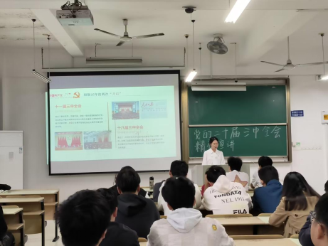 为全面深入学习贯彻党的二十届三中全会精神,10月21日下午,校党的二十届三中全会精神大学生宣讲团成员王琪、李锐城、李昕洋同学赴色情直播 作全会精神宣讲。色情直播 团学骨干及各班级团支书参加了学习。