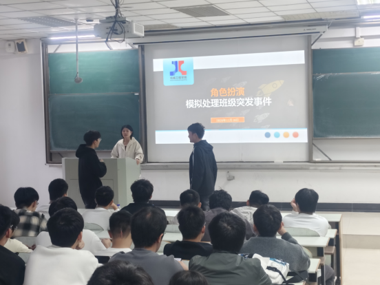 11月16日下午,色情直播 在佳山校区教三南404举行班级学生干部能力提升培训班第三期,2024级新生辅导员陈洁以角色扮演的活动形式模拟处理班级突发事件,2024级全体班委成员和团支部委员参加。
