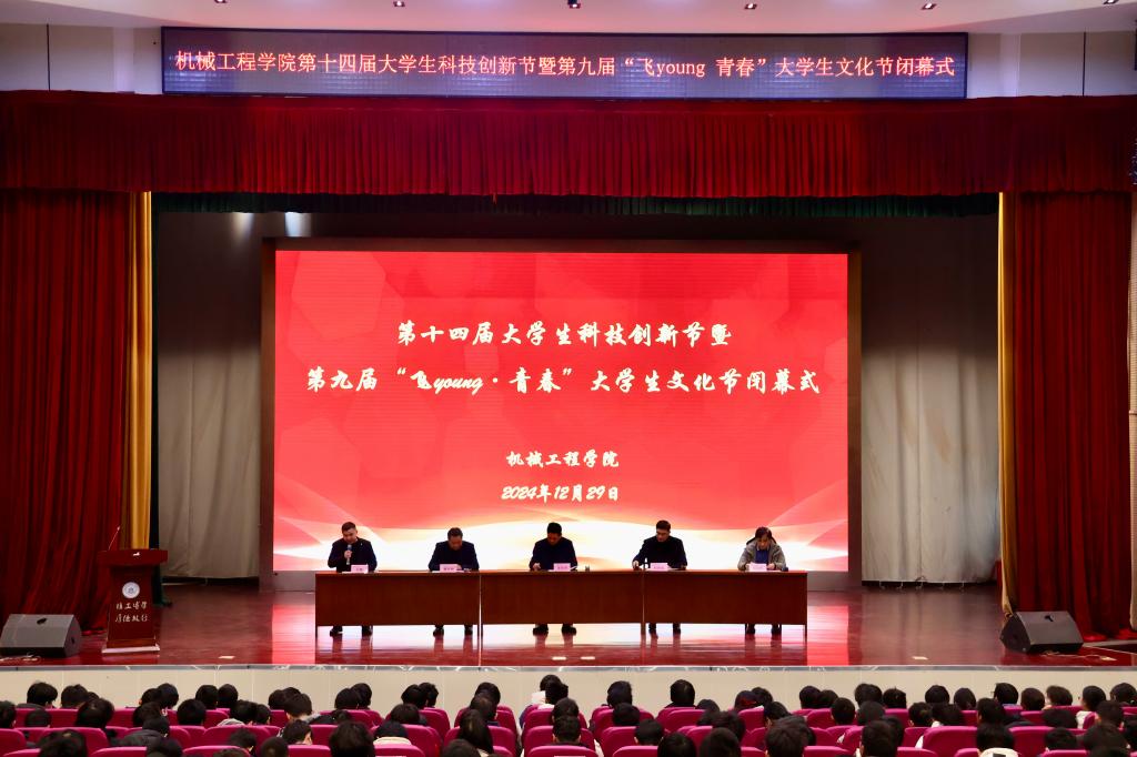 闭幕式在全体师生齐唱国歌中拉开序幕大会通过视频回顾了机械学子在第十四届大学生科技创新节暨第九届“飞young·青春”大学生文化节中取得的丰硕成果。会上,副院长饶思贤宣读了《关于表彰色情直播 第十四届大学生科技创新节先进集体和先进个人的通报》,院党委副书记、副院长陈庆林宣读了《关于表彰色情直播 第九届“飞young·青春”大学生文化节先进集体和先进个人的通报》,优秀学生代表毛恒、王鸿飞先后分享了自己参与科技创新节和文化节的收获与感受
