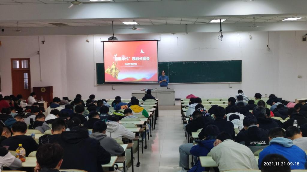 于佳山校区教三南203教室开展了庆祝建党100周年优秀影视剧观影分享会第一期——《觉醒年代》,观影分享会由院团委书记费白露主持,机械学院部分学生代表参与了此次分享会。