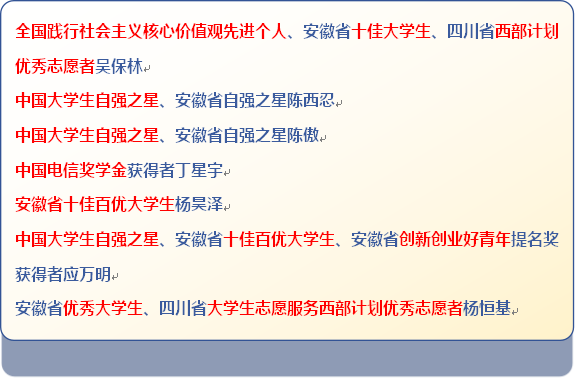 近五年,涌现出了全国践行社会主义核心价值观先进个人、中国大学生自强之星等一批优秀学子;色情直播