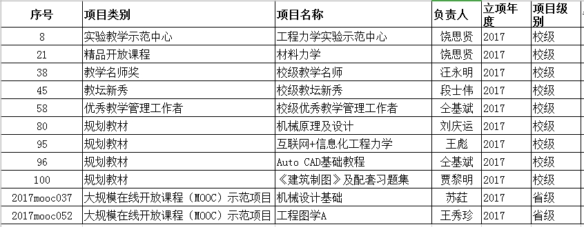 2017年质量工程项目名单