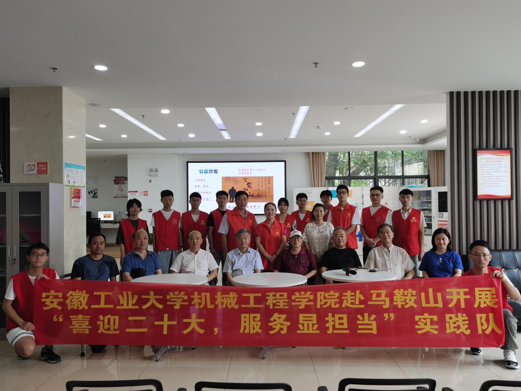 研究生第一党支部参加“喜迎二十大,服务显担当”暑期实践队,来到马鞍山市志愿服务中心,开展了“父爱如山”志愿公益沙龙活动。参与活动的嘉宾有:马鞍山市原副市长陈苏汉、周宏基,原市地方志主任赵宏,原市文联副主席戎林(中国著名作家、市政府文化顾问),安徽华冶律师所事务所书记、市民间艺术家协会秘书长杜新蒙,原市公安局刑侦大队副大队长周强,中国红十字先进个人、省三八红旗手、马鞍山好人艾洁等老师。