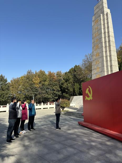 在庄严肃穆的横山抗日英雄纪念碑前,全体党员整齐列队,深切缅怀为民族解放事业英勇献身的革命先烈。面对党旗,全体党员庄严宣誓,重温入党誓词。铮铮誓言回荡在纪念碑前,全体党员永葆初心、勇担使命的信念更加坚定。随后,大家依次瞻仰烈士纪念碑,认真聆听革命历史讲解,深刻感悟革命先烈不畏艰难、勇于牺牲的崇高精神。全体党员从本次活动汲取了精神力量,增强了党性修养,牢记为党育人、为国育才的初心使命,把革命精神转化为推动教育教学、科研创新的强大动力。
