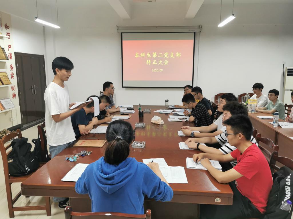 大会主要讨论预备党员转为正式党员事宜。大会开始,支部书记费白露清点了应出席党员、正式党员人数与实际到会人数。之后,闫爽爽等3名预备党员就预备期内个人思想、学习、工作、生活等方面的表现向大会做了详细的汇报,表明自己的态度和决心。与会党员充分发表意见,对转正党员预备期间的表现进行了认真评议。最后与会正式党员以无记名投票的方式对3位预备党员进行逐个表决,3名预备党员全票通过,支部书记费白露宣读了支部大会决议,宣布3名同学成为中共正式党员。