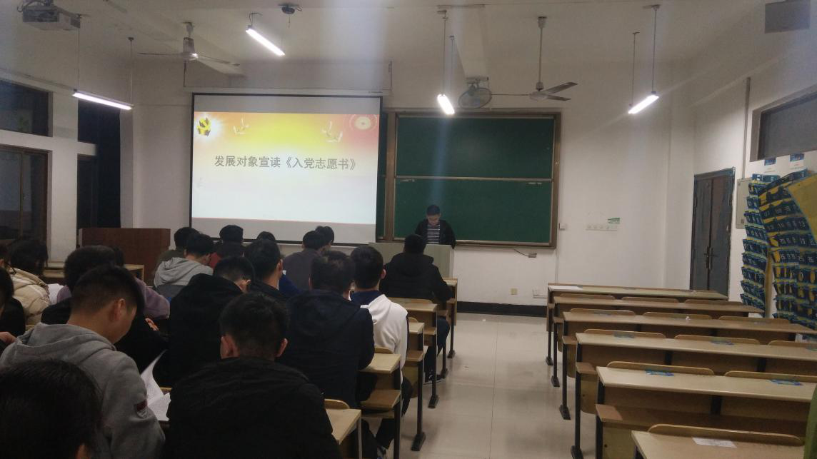 2018年11月26日色情直播 本科生第一党支部在机械楼407教室召开了入党积极分子发展为中共预备党员大会,该会议由本科生第一党支部书记章军同志主持召开,本科生第一党支部的正式党员及预备党员参加了此次会议。