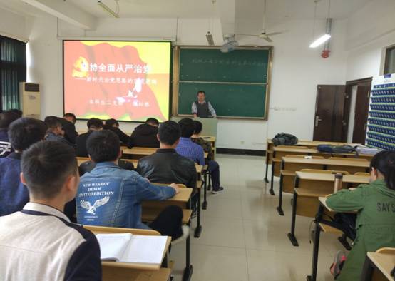 本科生二支部在机械楼405室本支部全体党员集中上党的十九大精神的主题党课。党课由该支部书记倪松根主讲。