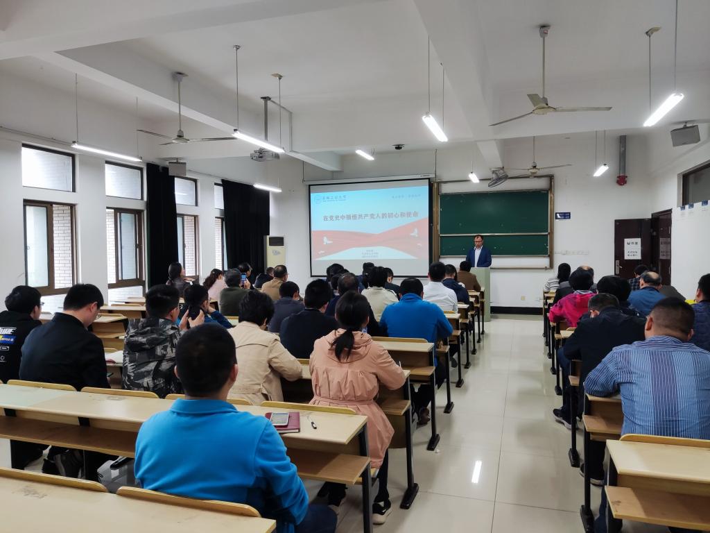 副教授倪松根来我院作“举旗帜 送理论”建党百年专题宣讲。宣讲会由我院党委书记徐柳根主持,全体教师党员参加了宣讲。
