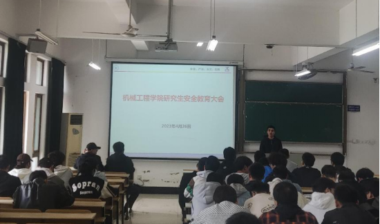 在机械楼405教室召开研究生安全教育大会,全体研究生参加会议,会议由研究生辅导员主持。