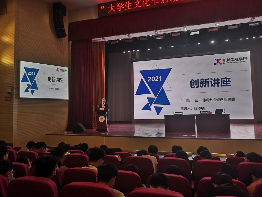 邀请了我院2002届优秀校友三一重工股份有限公司泵送公司副总经理、泵送研究院院长陈添明为学院本科生、研究生作了题为“三一混凝土机械创新思路”的报告会。报告会在秀山校区大学生活动中心开展,由学院党委副书记、副院长李克明主持,学院全体辅导员、各年级本科生代表、研究生代表参加了报告会。