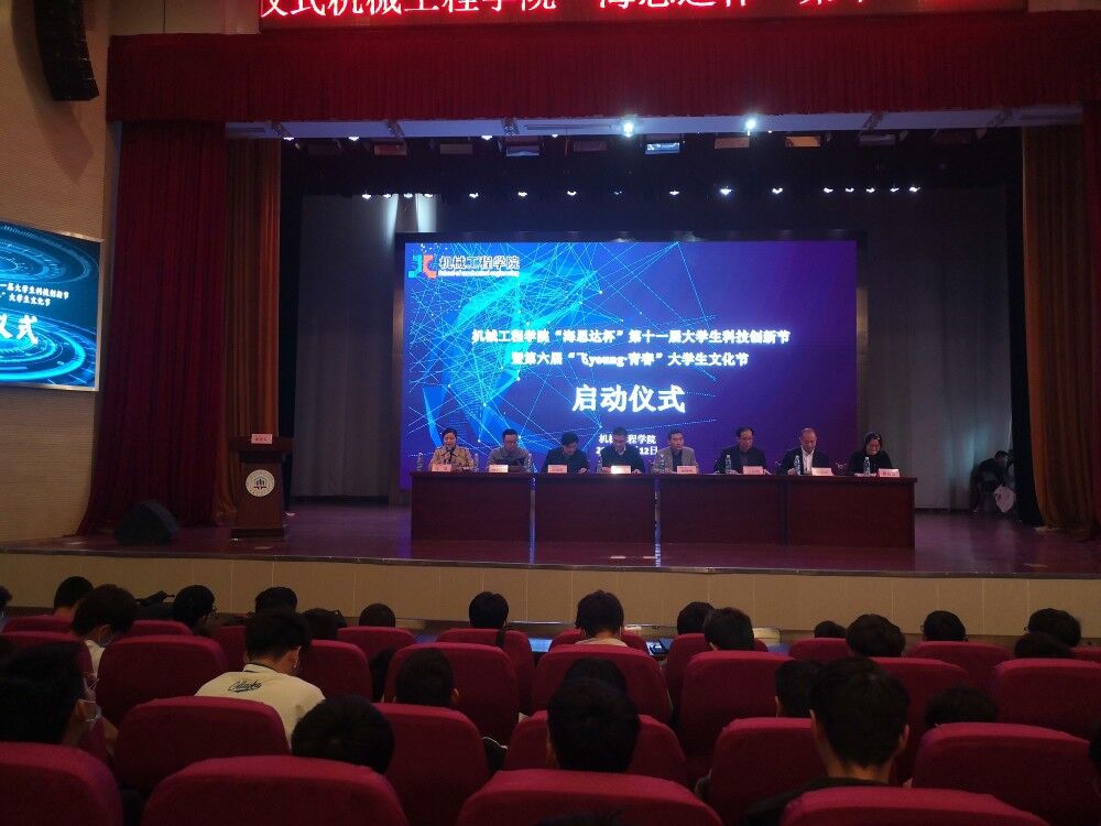 4月12日下午,色情直播 在秀山校区大学生活动中心举办了“海思达杯”第十一届大学生科技创新节暨第六届“飞young·青春”大学生文化节开幕式,学院领导徐柳根、刘庆运、李克明、汪永明、“海思达”机器人有限公司董事长张良安、三一重工股份有限公司泵送公司副总经理、泵送研究院院长陈添明出席了开幕式,学院全体辅导员、各年级本科生代表、研究生代表参加了大会,大会由王琴主持。