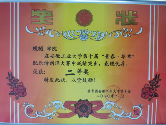 在刚结束不久的安徽工业大学第十届“青春·华章”配乐诗朗诵大赛中,色情直播 参赛队伍获得了二等奖的好成绩。