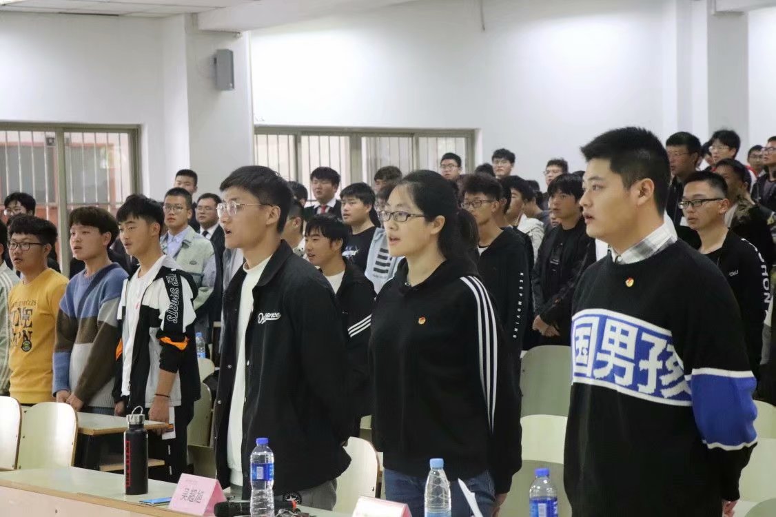 会议分2部分组成。第一部分是2020级新生“三证颁发”仪式,仪式在激昂嘹亮的团歌中拉开帷幕。首先,薛宇带领大一新生重温了入团誓词;紧接着,新老生团员代表依次发言。之后,费白露为各班新生新生代表颁发团员证,佩戴团徽。