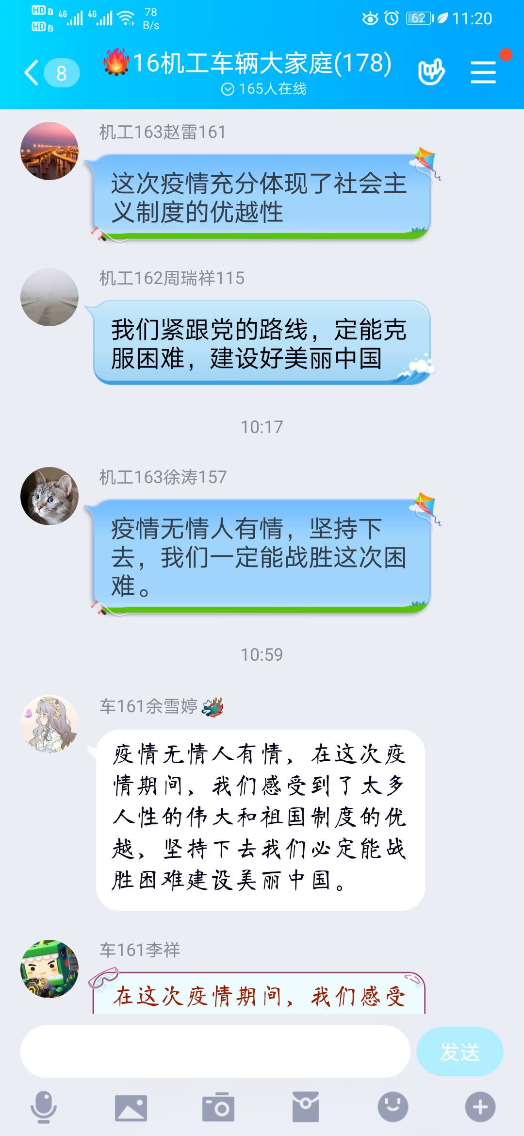 直播结束后,各班通过线上班会讨论的方式,分享学习感受。同学们反响良好,纷纷表达了对战胜疫情的信心,对中国特色社会主义制度的自信。(撰稿:费白露 审核:李克明)