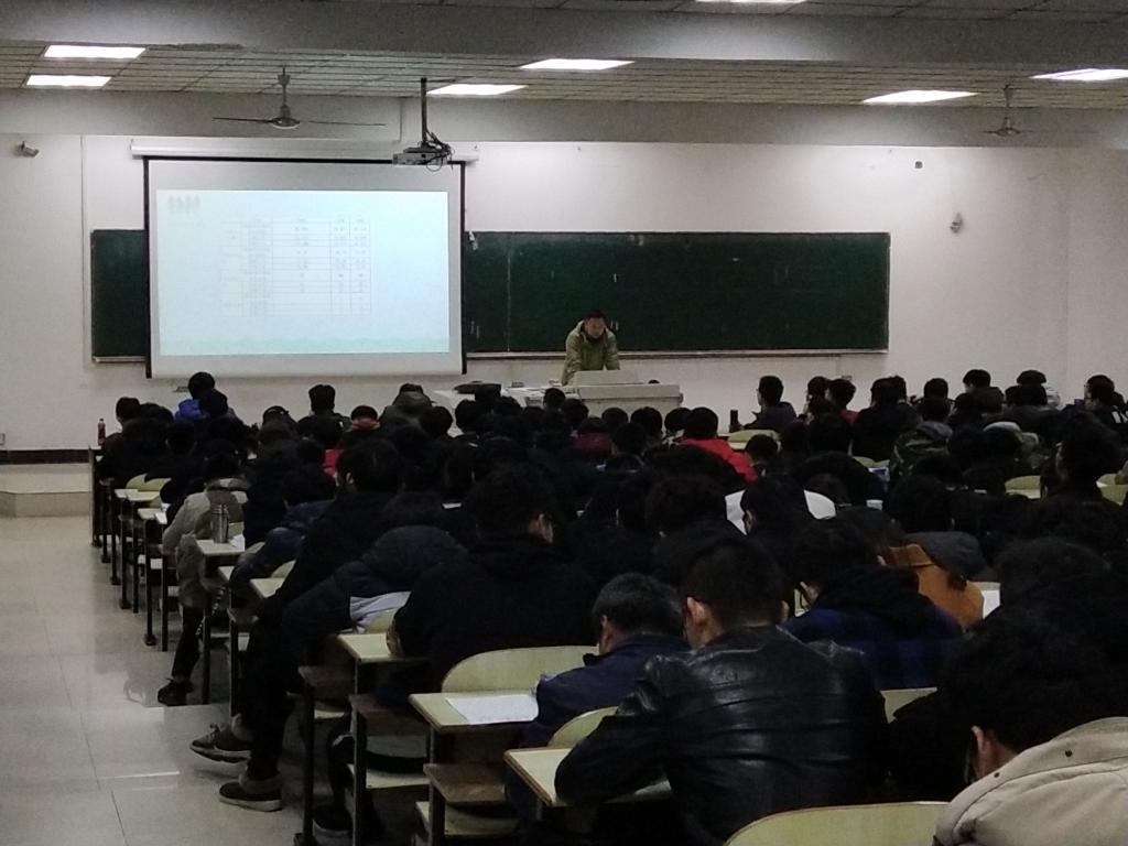 大一年级,王琴老师对即将到来的挑战杯,创新大赛进行了介绍。让同学们对这些科技竞赛有了初步了解,并认识到这些科技竞赛可以充分培养和发挥我们的创新创造能力,发展自己的兴趣。章军老师对上学期的成绩进行总结,表扬优点,点出不足,并与其他届学长们进行了比较,强调了同学们对于学习的态度不可松懈。对同学们日常生活的方方面面进行了安全指导,尤其对宿舍防火和卫生、校园贷以及传销问题做了重点强调,提到了走路带耳机,骑车带耳机等错误的走路方式带来的严重后果,要求同学们牢记""一听二看三通过""的交通法则。