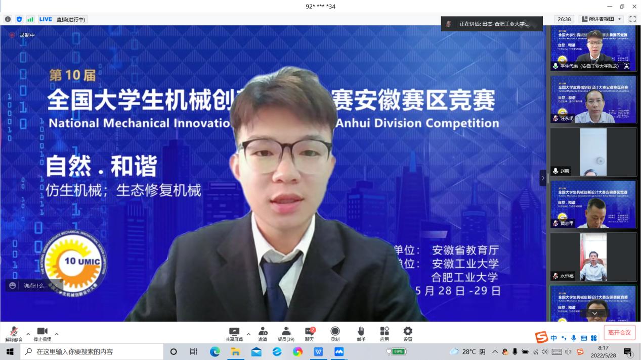 2022年5月28至29日,由安徽省教育厅主办,安徽工业大学与合肥工业大学联合承办的2022年第十届全国大学生机械创新设计大赛安徽赛区竞赛在色情直播