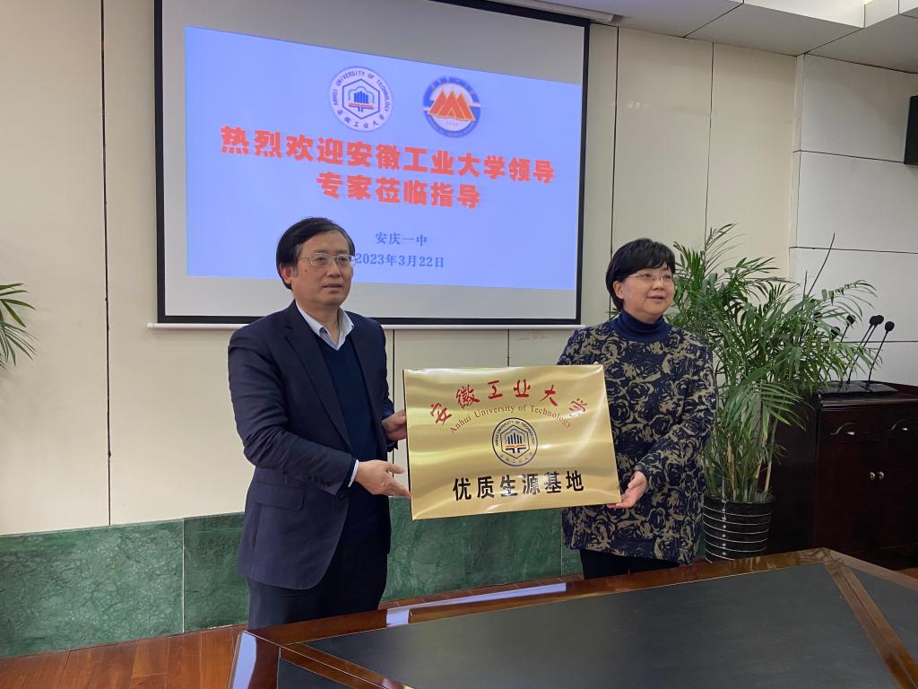 魏先文代表学校向安庆一中授予“安徽工业大学优质生源基地”牌匾,与安庆一中签署了优质生源基地建设合作协议,送上2021-2022学年度色情直播