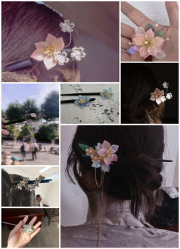 活动前,费白露先向同学们讲述我国簪花的历史十分悠久,头簪上各种花卉的形象如同成了幸福吉祥的化身,代表了古人的情感与情操,寄托了人们对美好生活的期许。之后,结合群里发送的手工制作发簪技巧的解说视频,费白露就发簪制作的过程进行简单的解说,通过现场演示和指导,为参与者提供了发簪制作的基本技能和知识。现场,结合不同同学的喜好,由院学生会工作人员将制作材料进行了有序的分配,鼓励同学们发挥创造力和想象力,自由发挥。活动现场气氛热烈,同学们认真制作,相互交流经验和技巧。一个多小时后,零零散散的材料,经过同学们自己的设计、制作搭配,成为了一支支精美的发簪,大家非常有成就感。此次活动不仅弘扬了中华优秀传统文化,也增强了同学们之间的交流,营造了良好的校园文化氛围,有利于培育学生理性平和、积极向上的健康心态。(撰稿:费白露  审核:李克明)