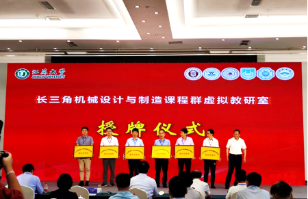 长三角机械设计与制造课程群虚拟教研室作为首批江苏省虚拟教研室建设培育点,由江苏大学牵头,联合上海理工大学、浙江工业大学、安徽工业大学、南京工业大学、河海大学、南通大学等六所高校于2021年7月共同发起,是具有鲜明专业特色的区域性虚拟教研室。本次成立大会由开幕致辞、虚拟教研室工作报告、虚拟教研室章程审议、揭牌授牌仪式、特邀专家报告、教研组分组讨论以及教研室工作部署等环节组成。汪永明副院长代表安徽工业大学参加了长三角机械设计与制造课程群虚拟教研室副主任单位授牌仪式。