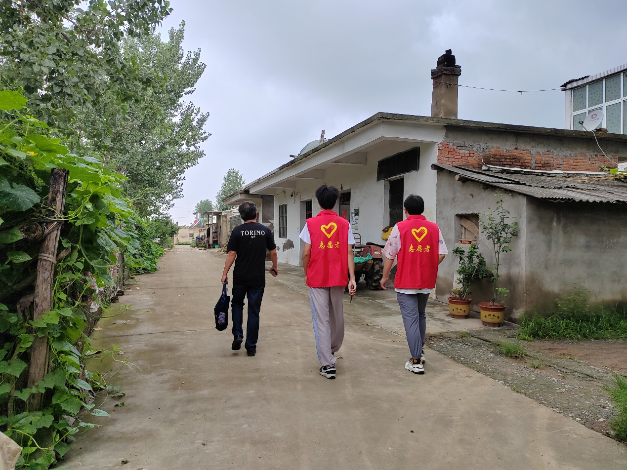 图为村委带领实践队走访村民