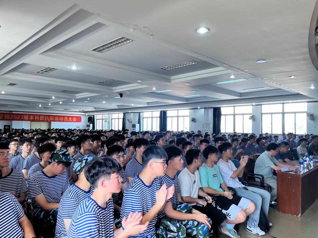 在佳山校区大学生活动中心召开了2023级新生军训动员大会,学院党委书记吴文兵,学院院长刘庆运,学院党委副书记、副院长李克明,团委书记费白露,各系主任、2023级辅导员、教官代表以及全体2023级新生参加了此次大会,大会由新生辅导员张敏主持。