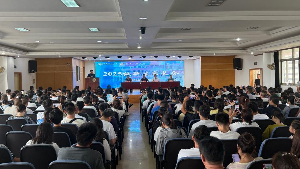 2025 级新生家长会在佳山校区大学生活动中心举行。院领导班子、各系系主任、班主任、400余名新生家长参加,本次会议由2025级新生辅导员董春辉主持。