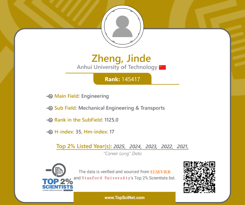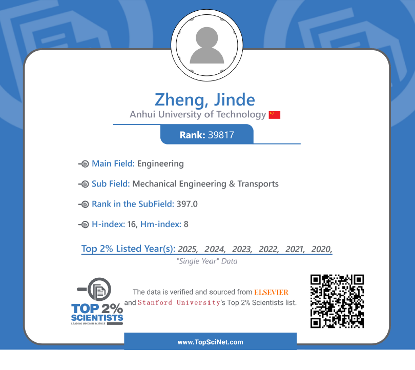 美国斯坦福大学与爱思唯尔(Elsevier)共同发布的《全球前2%顶尖科学家榜单》(World's Top 2% Scientists)近日揭晓。我院设备健康管理与智能诊断团队4位教师凭借突出的科研贡献荣登榜单。其中,郑近德教授入选“终身科学影响力排行榜”;郑近德教授、潘海洋副教授、童靳于副教授、程健博士跻身“2025年度科学影响力排行榜”。