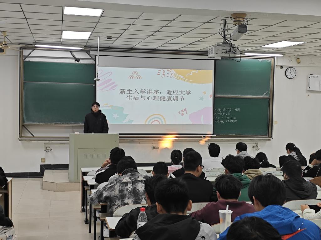 于佳山校区教三南404举行新生入学适应心理健康讲座。本次活动由彭勇刚老师主讲,25级新生参与。