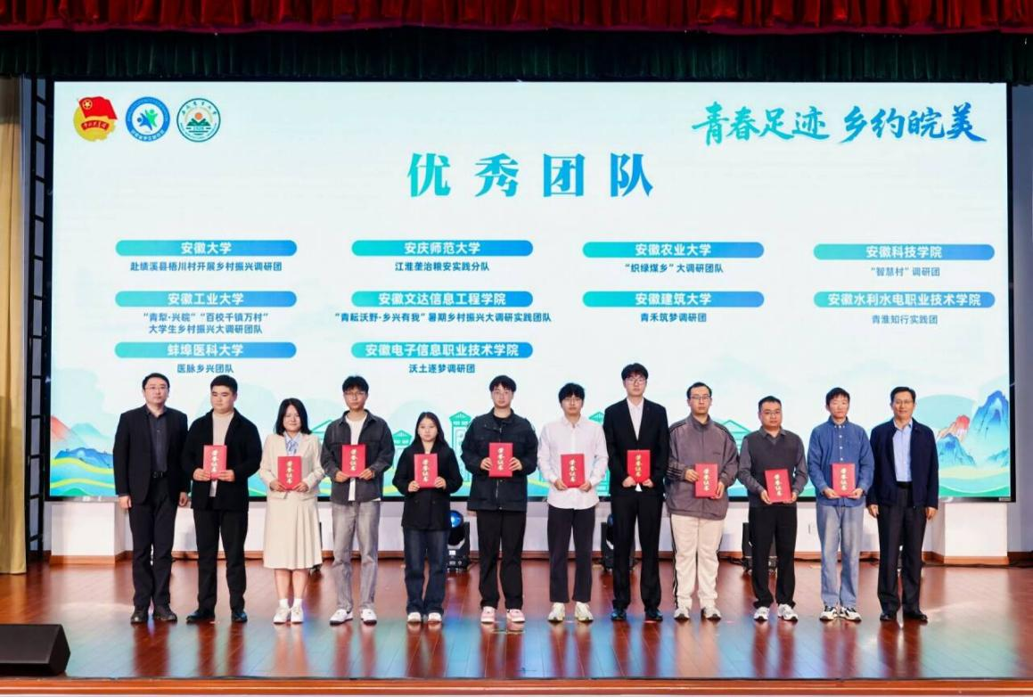 10月24日,第二届安徽省“百校千镇万村”大学生乡村振兴大调研总结大会在安徽农业大学成功召开。团省委书记陈民生、安徽农业大学党委书记张庆亮等领导,以及各高校师生代表出席大会。我院“青犁·兴皖”团队凭借严谨科学的调研设计、深入扎实的田野工作和富有成效的成果转化,荣获“优秀团队”,安徽农业大学党委书记张庆亮、团省委副书记周宇为我院团队代表颁发证书。