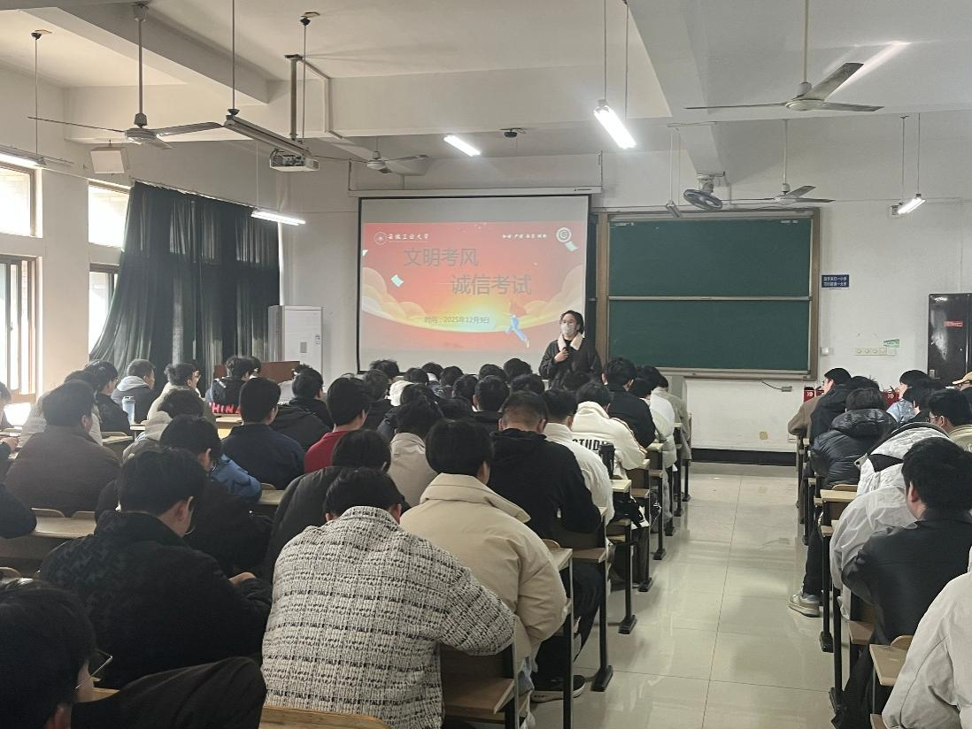 随后,辅导员孙紫玮重点强调考风考纪的重要性,明确研究生入学考试是国家教育考试,纪律严明,任何违纪作弊行为都将受到严肃处理,要求学子心存敬畏、诚信应考。同时提醒同学们要提前抵达考场完成安检,不携带手机、智能手环等违规物品,按要求备齐证件与文具;入场后对号入座,严格遵守考场指令,规范答题行为,自觉维护考试公平。