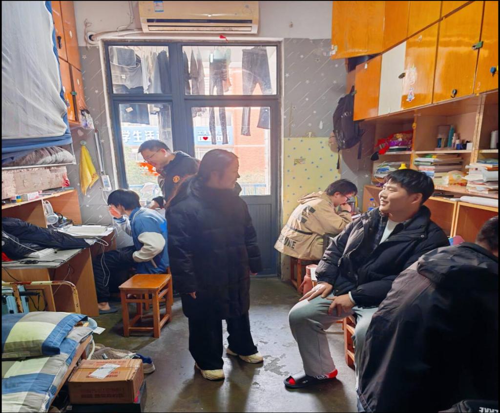 2025级辅导员董春辉、毕苗深入学生宿舍,开展消防安全专项走访排查工作。