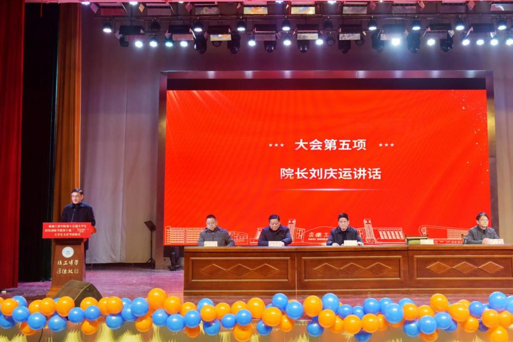 院长刘庆运向全体获奖集体和个人表示祝贺,向为此次活动付出辛勤努力的师生们表示衷心感谢。他指出,科技创新节与文化节是学院落实立德树人根本任务、推进 “五育并举” 的重要平台,不仅为学子们提供了展示才华、切磋交流的舞台,更锤炼了大家的创新精神、实践能力与人文素养。他希望全院学子以获奖同学为榜样,秉持创新初心、涵养文化底蕴,在专业学习中精进不休,在实践探索中勇攀高峰,争做志存高远的 “追光者”,做善思笃行的 “实干者”,做开拓进取的 “先行者”,为学院发展与国家建设贡献青春力量。