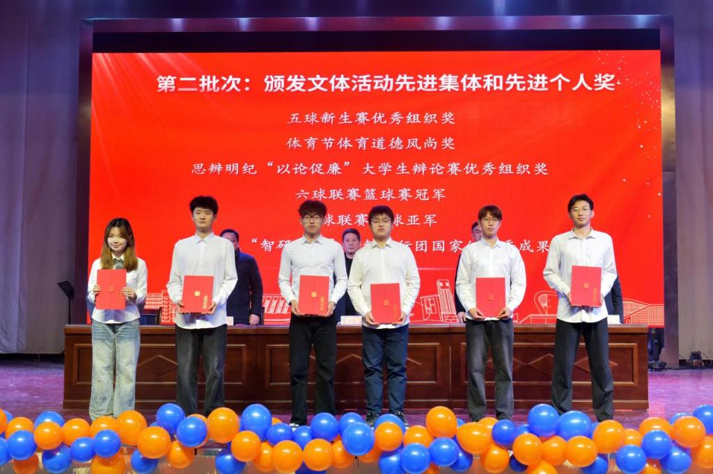 第十届 “飞 young・青春” 大学生文化节文体活动类先进集体和先进个人的通报》,对在各类竞赛与活动中表现突出的先进集体和个人予以表彰,院领导为获奖学生代表颁奖。