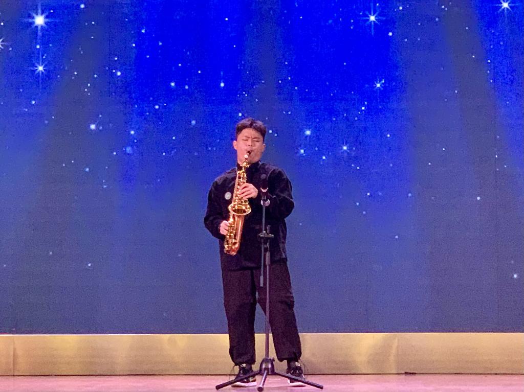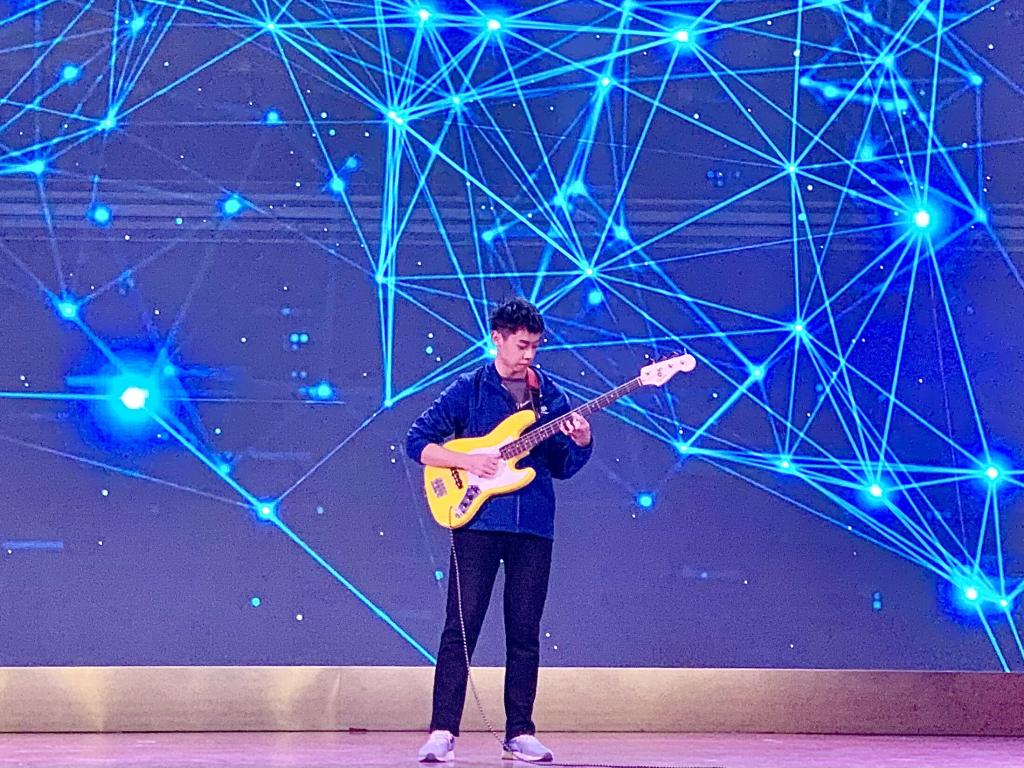 决赛现场,18组选手依次登台,淋漓尽致发挥,充分展现自己。我院学生王慈航为现场观众与评委老师带来了电贝司表演《Can't Stop》,汪涛则献上了萨克斯表演《一步之遥》。