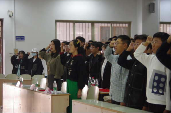 2022级新生团员“重温誓词”仪式于佳山校区教三南103教室举行。院团委书记费白露、2022级辅导员濮莹萍、院团委副书记于永麟出席此次活动,仪式由院组织部干事王启明主持。