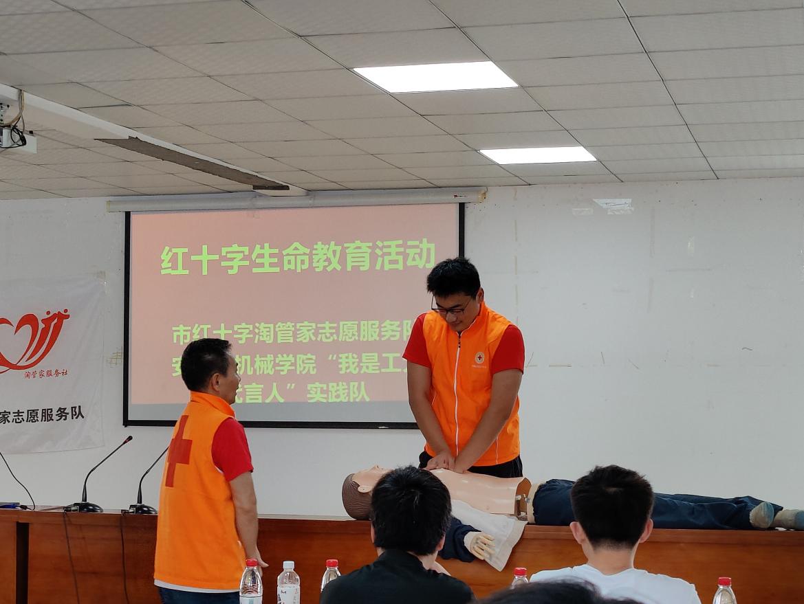 “我是工大代言人”暑期实践队来到马鞍山市花山区宁芜村,开展了“对生命的承诺,对爱的奉献”应急救护培训。