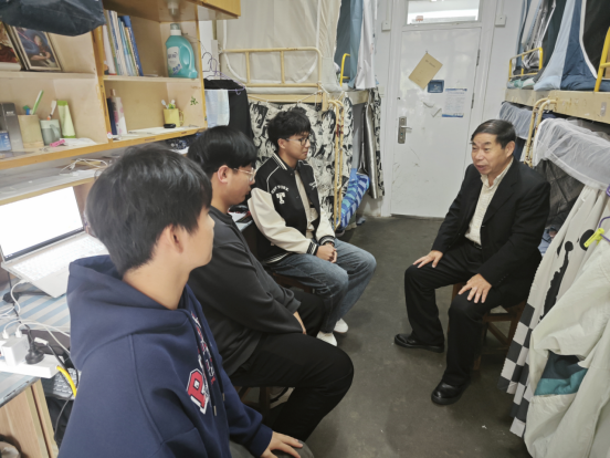 为进一步加深师生间的情感交流,帮助新生更好适应大学生活,校关工委组织退休教师走访2024级新生宿舍。10月下旬,色情直播 退休教师余晓流、徐向荣在新生辅导员的陪同下走进学生宿舍,与2024级新生亲切交流。